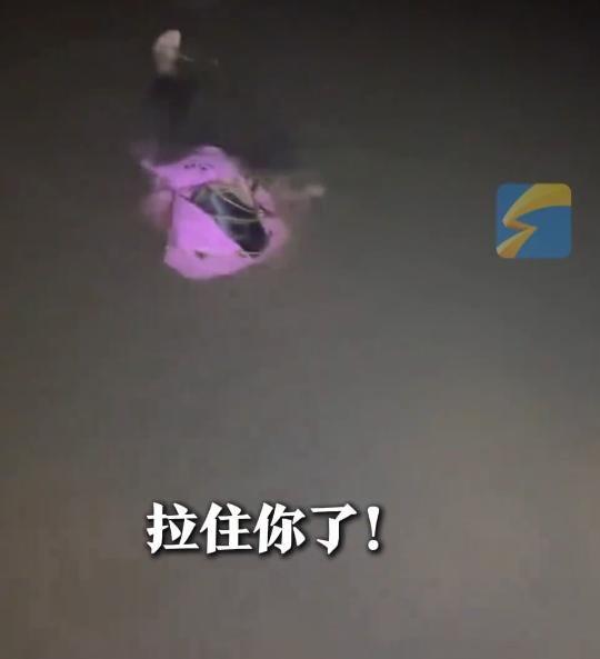 他们得把孩子慢慢拉回来,动作不能太猛,怕把衣服扯破了,也不能太慢,怕孩子坚持不住。
