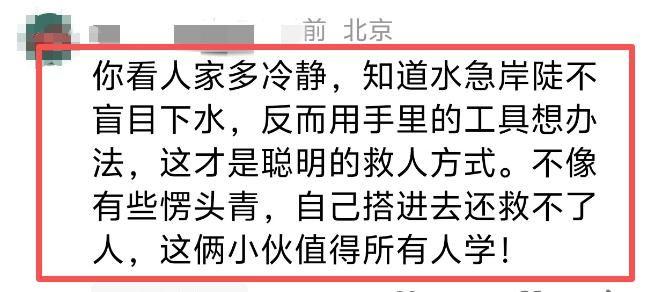 有的人则夸两个小伙子脑子活,用最简单的办法救了人。