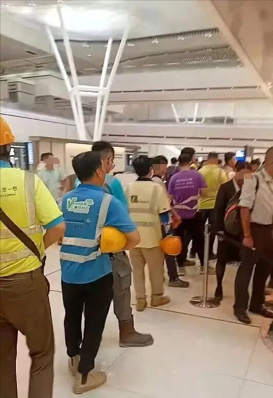 在排队长龙中,有不少是机场员工,包括工程人员、地勤以及机舱乘务员。