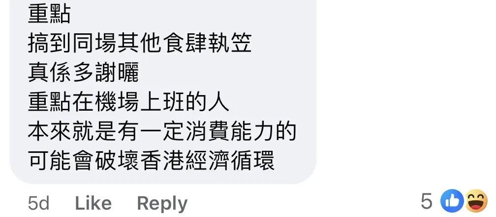 也有人分析,在机场上班的人,本身就有一定的消费能力,两餸饭在这里开店会导致机场里的其他餐饮店倒闭,形成经济的恶性循环。