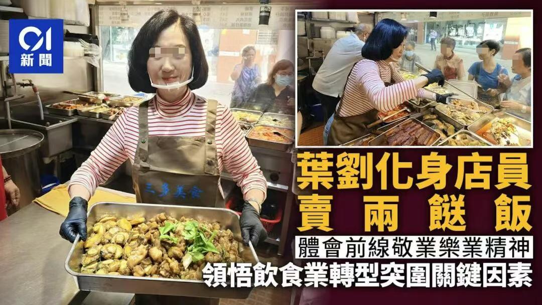 香港的而立法会议员叶刘淑仪,也在两餸饭的门店里亲自当了一回店员,体验前线工作。