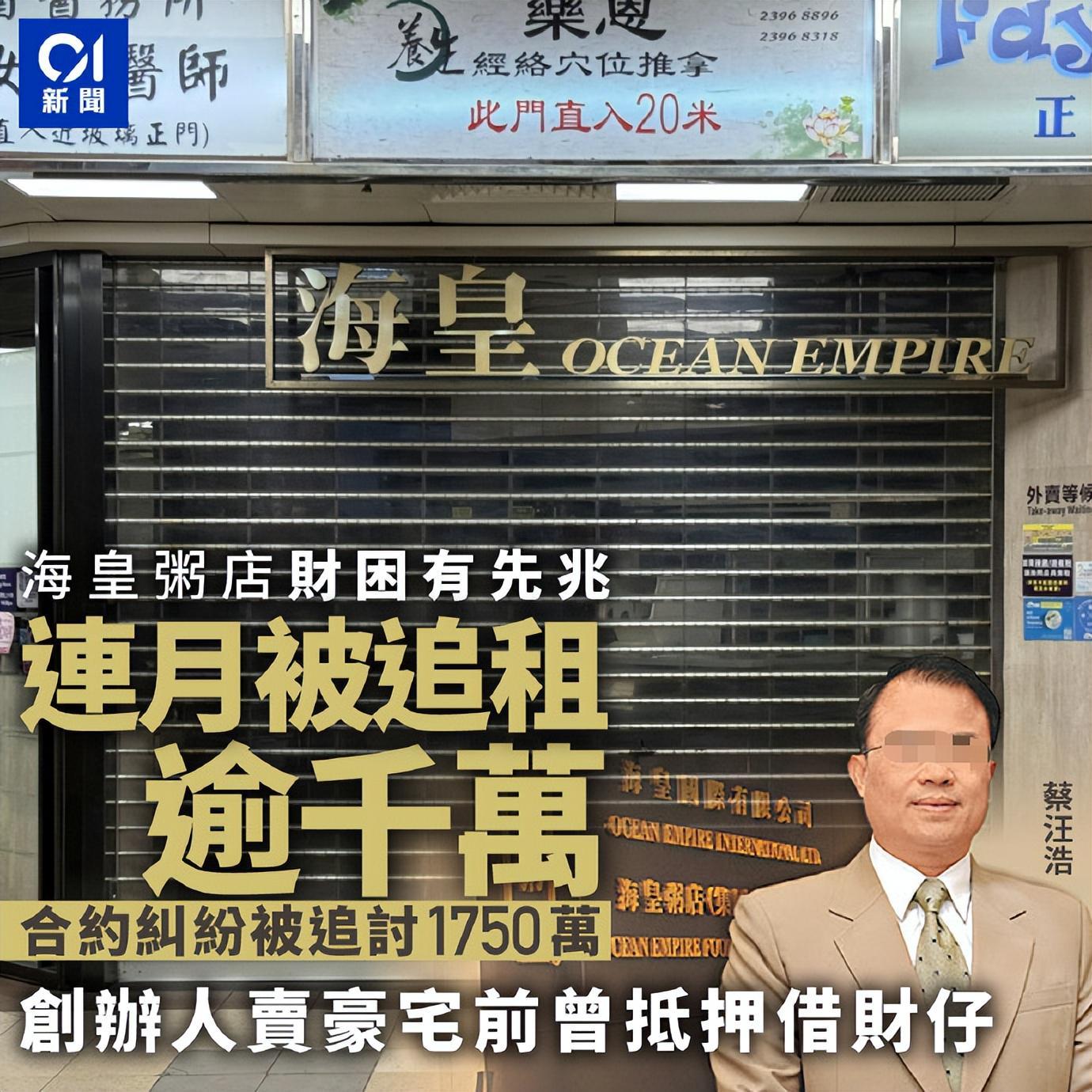 海皇粥店的闭店公告里就写道,“基于经营环境及公司财务状况恶化等因素,决定终止全部业务,并于同日关闭所有店铺及办公室。”