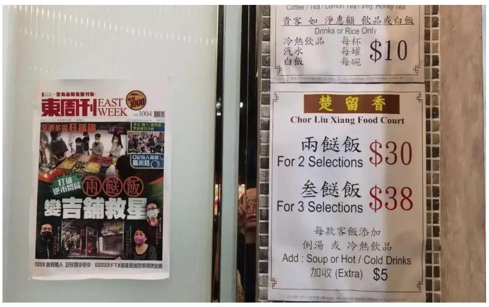 一间间小店如雨后春笋般在香港的土地上冒出来,玻璃柜里摆着十几道家常菜,红底白字的价目牌钉在最显眼处:“两餸饭35蚊,三餸饭40蚊”。