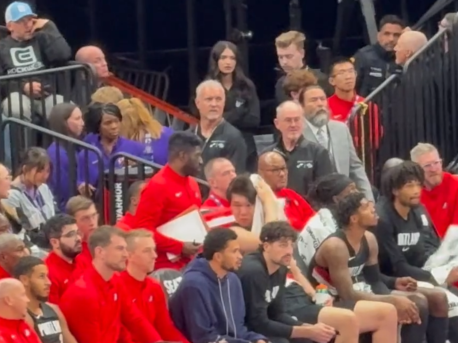 比赛结束后,杨瀚森在替补席上难掩失落情绪,镜头捕捉到他眼眶通红、神情落寞的画面。据现场观察,他多次与教练组成员沟通,显然对自身表现极为不满。这种自责情绪在犯满离场时达到顶点——当裁判吹响第六次犯规哨声时,他无奈地摇头并低头走向场边,展现出年轻球员面对挫折时的典型反应。
