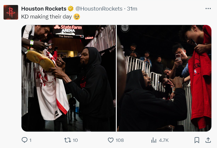 赛前杜兰特为亚特兰大的球迷暖心签名。