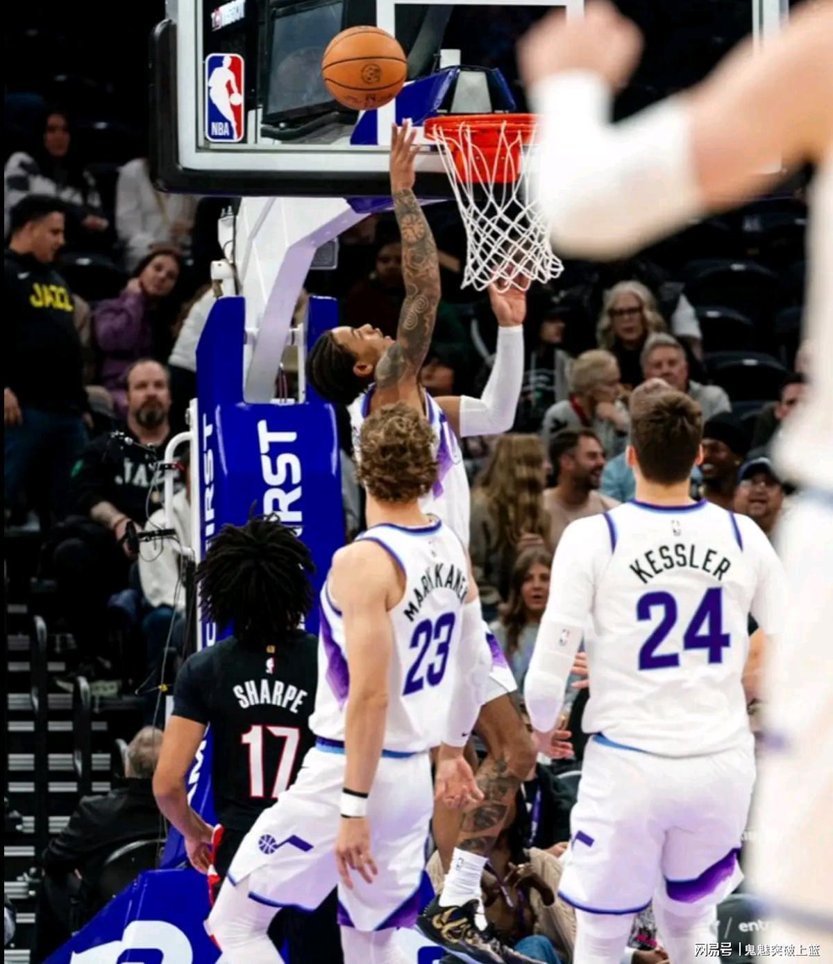 爵士:马尔卡宁15分3板5助,凯斯勒首秀轰14分10板8助2断2帽,乔治20分,努尔基奇12分4板。