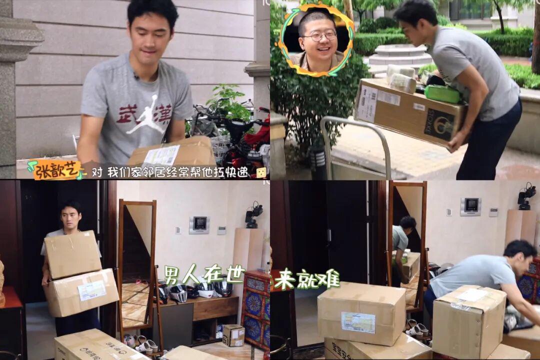 因为怀孕坐月子,张歆艺每天在家的消遣方式就是“买买买”,袁弘就负责搬快递。