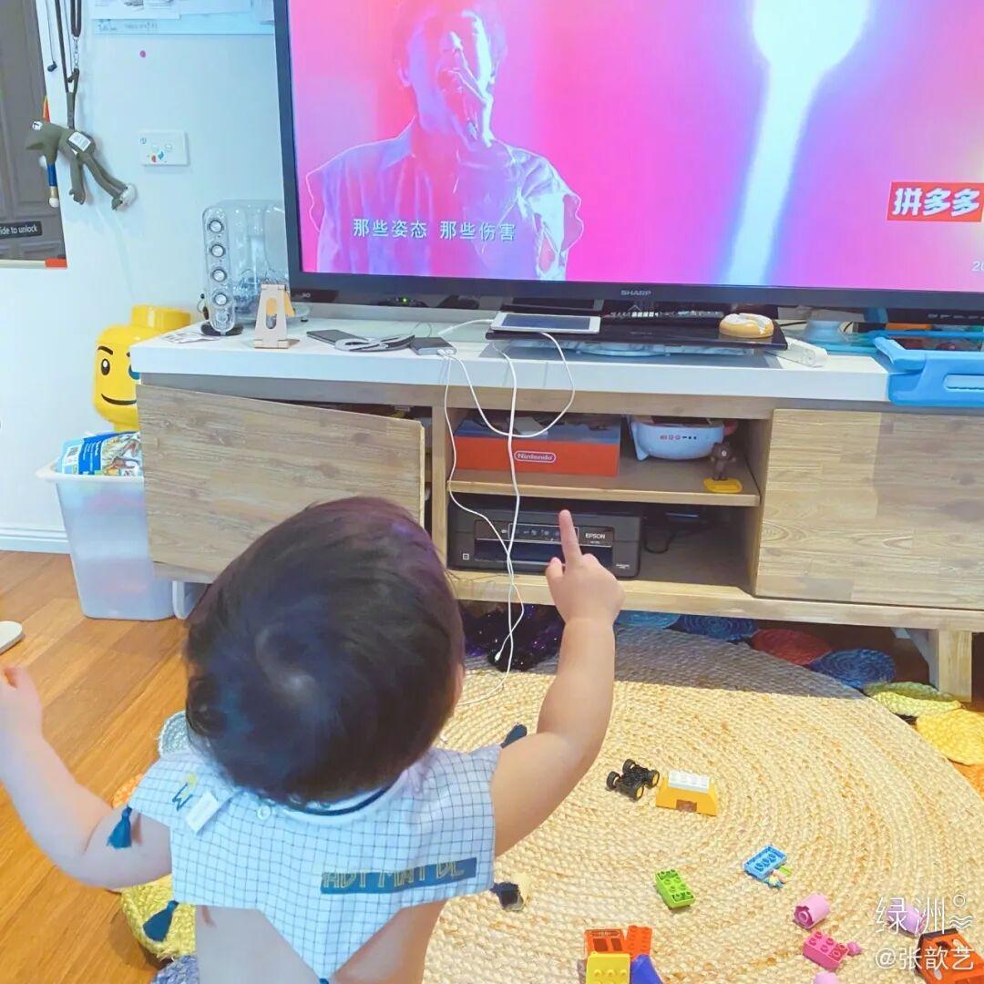 一岁的时候,四坨听声音能认出电视里的花花舅舅