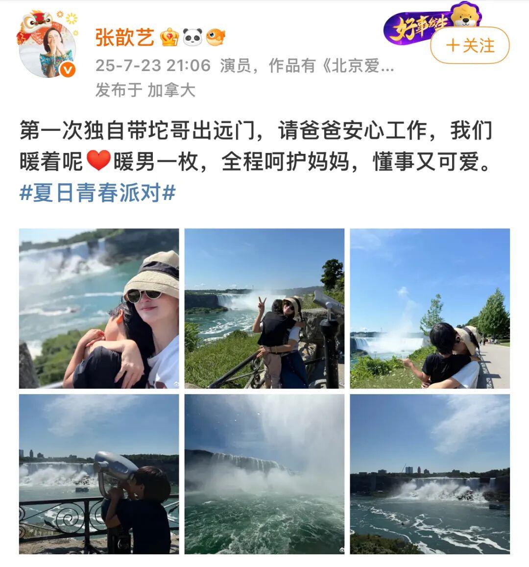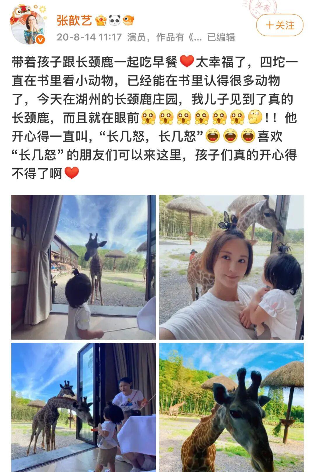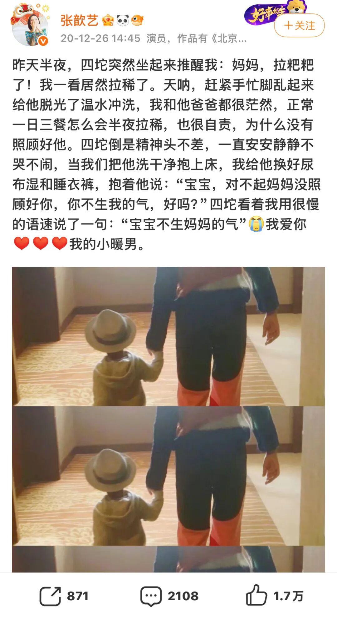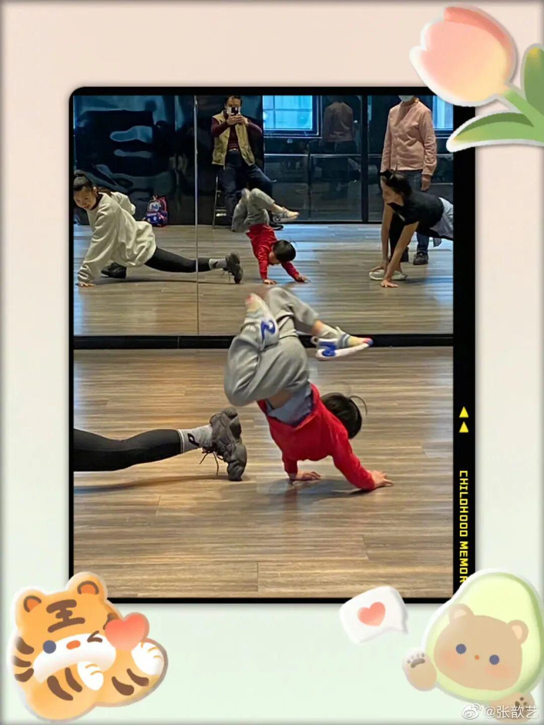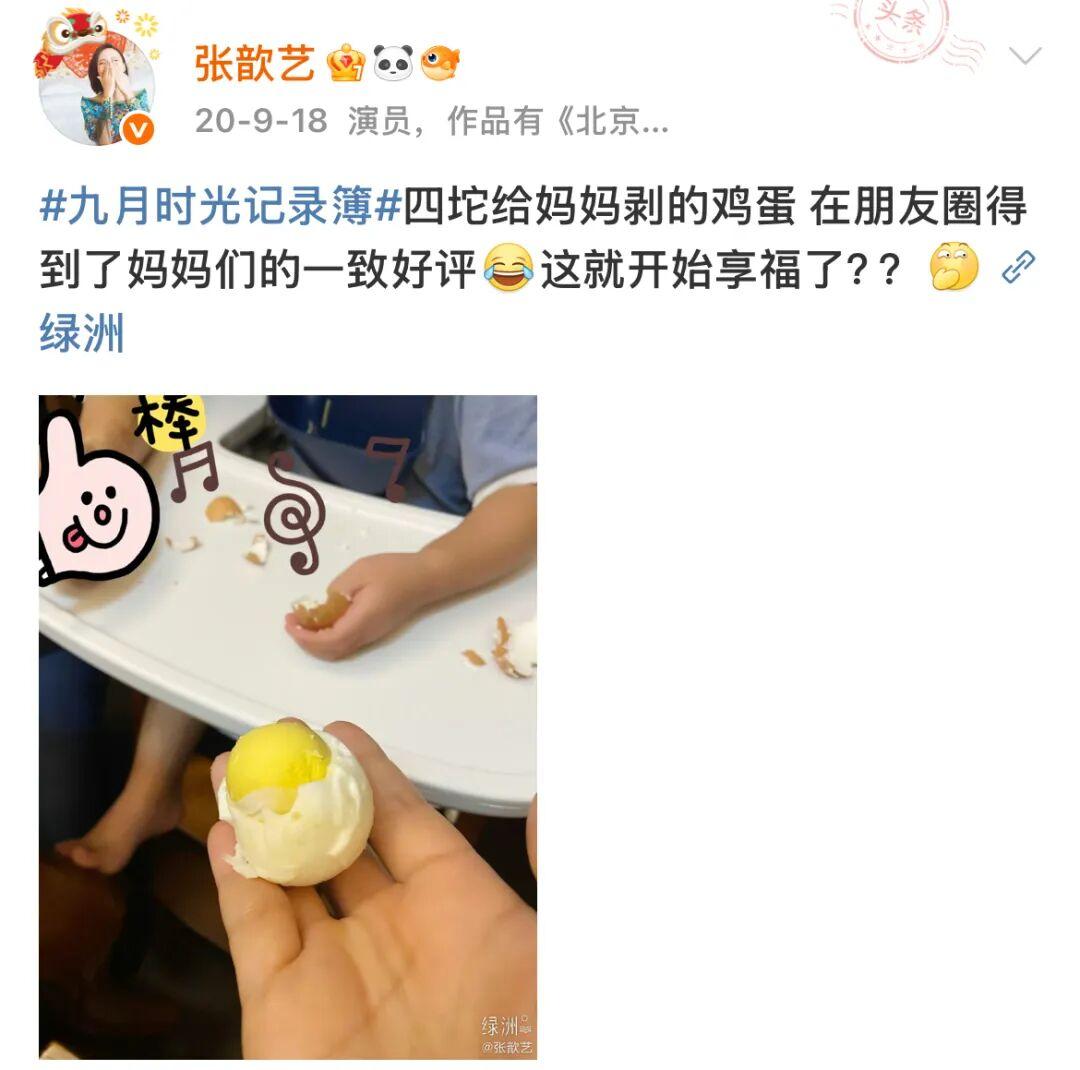 好在张歆艺有颗爱晒娃的心,会在微博上记录关于四坨的点点滴滴。