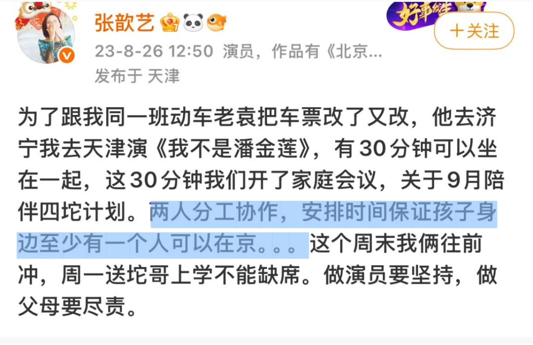 张歆艺说之后两人会各自减少一部分工作量陪伴孩子时