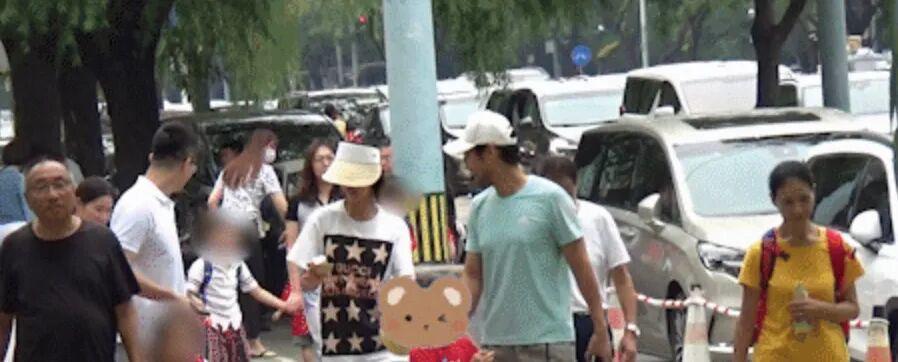 去年夏天四坨上小学了,有网友偶遇到袁弘和张歆艺接儿子放学