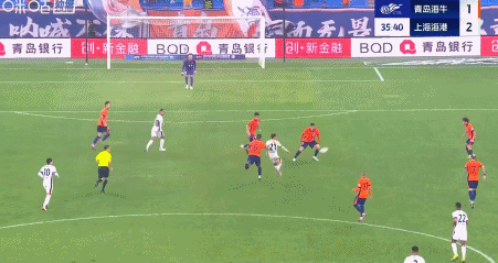 第36分钟,青岛海牛险些扳平比分。刘若钒横传,梅伦多迎球打门被门将颜骏凌神勇扑出。
