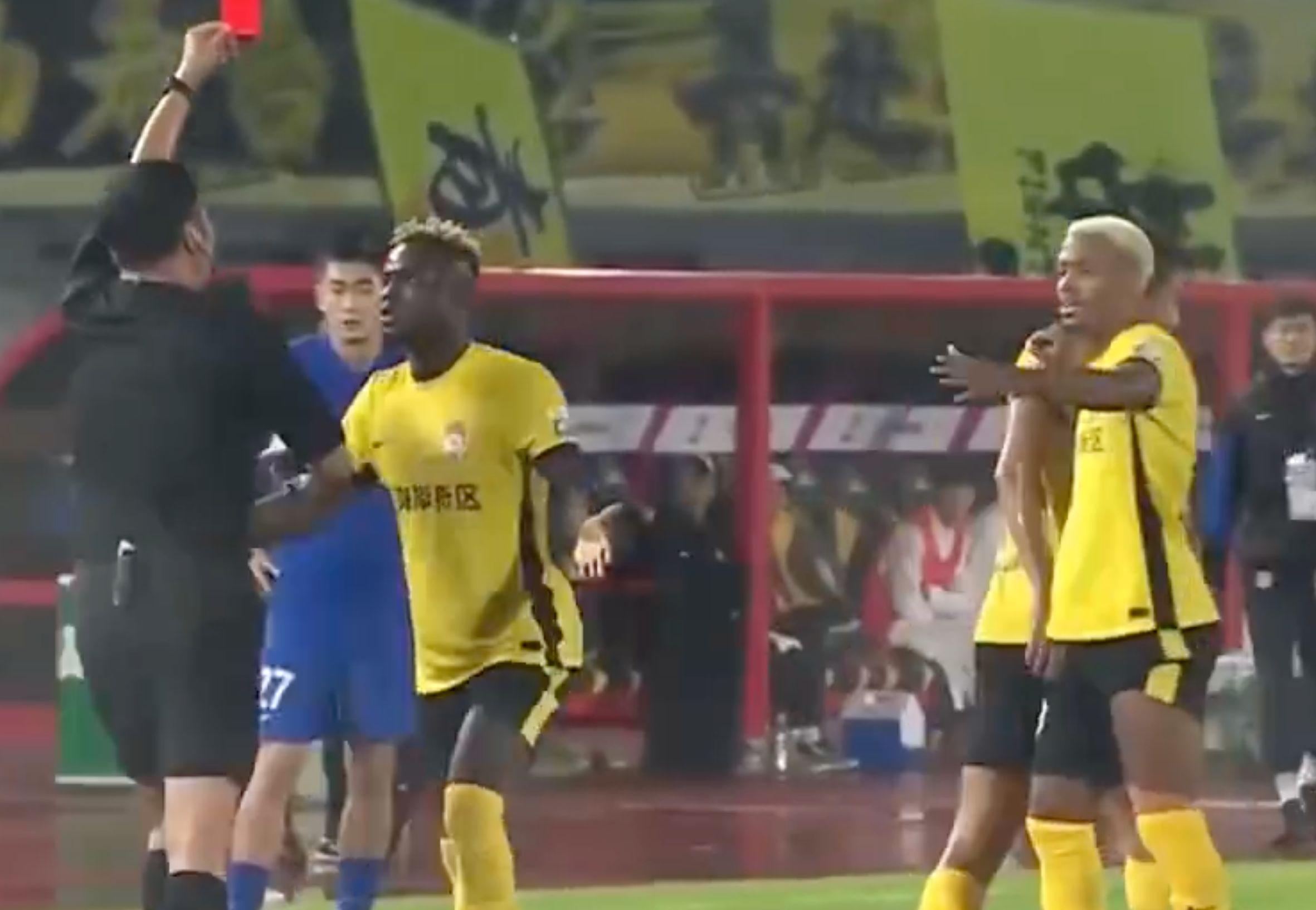 西海岸外援阿齐兹见状急忙上前拉拽,试图将情绪失控的张呈栋带离现场,但未能成功。在被连续辱骂后,主裁判最终直接出示红牌,将张呈栋罚出场外。自知难逃处罚的张呈栋骂骂咧咧走向球员通道,脸色铁青。