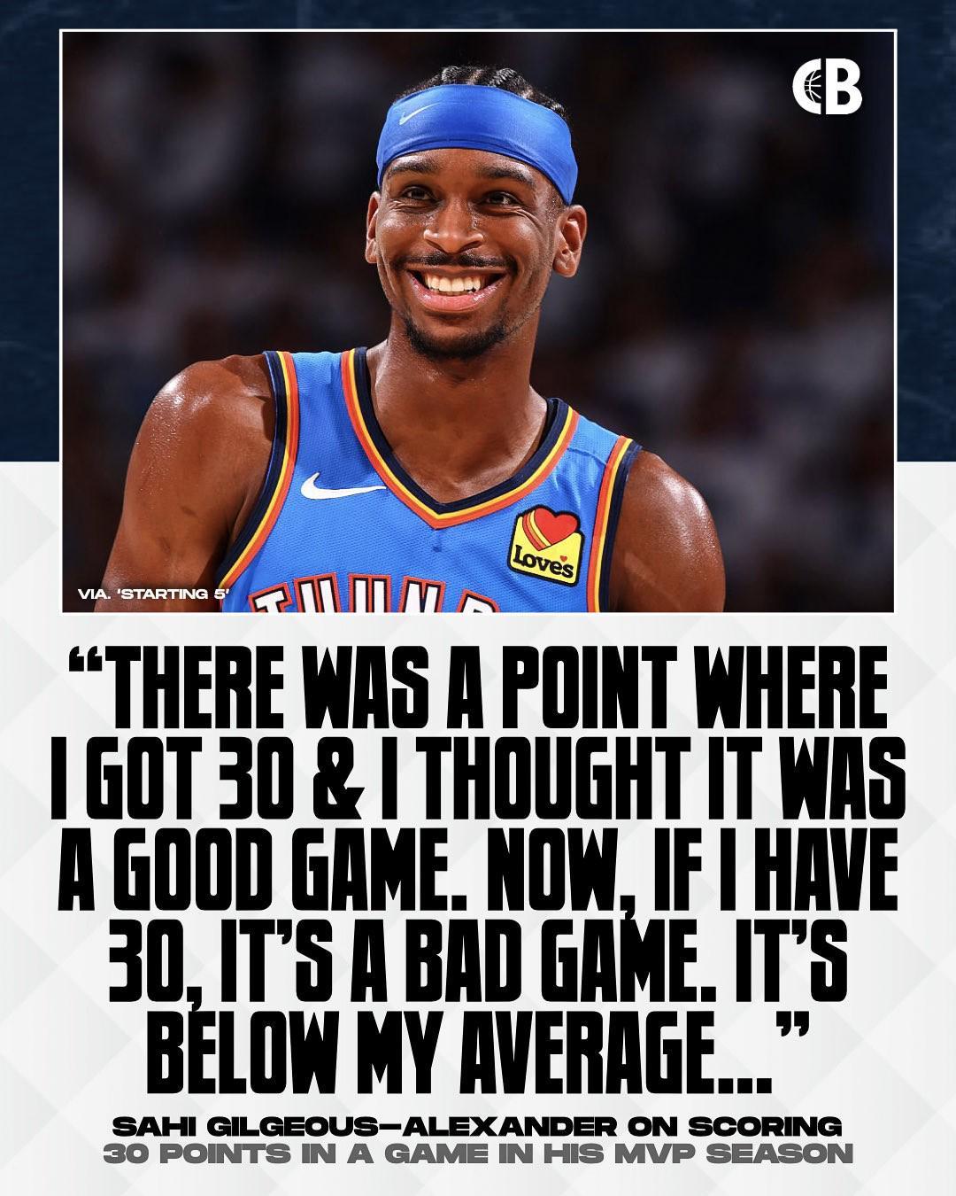 在纪录片中,亚历山大敞开心扉,分享了自己在上个赛季得分表现方面的深刻感悟。他坦言道:“在过去的比赛里,如果我能够在一场球中砍下30分,那我一定会觉得这场比赛自己的发挥相当不错。然而,时过境迁,如今如果在一场比赛中我只得到30分,那我就会觉得这场比赛我的表现简直糟糕透顶。因为现在我的场均得分已经远远高于这个数字了……”