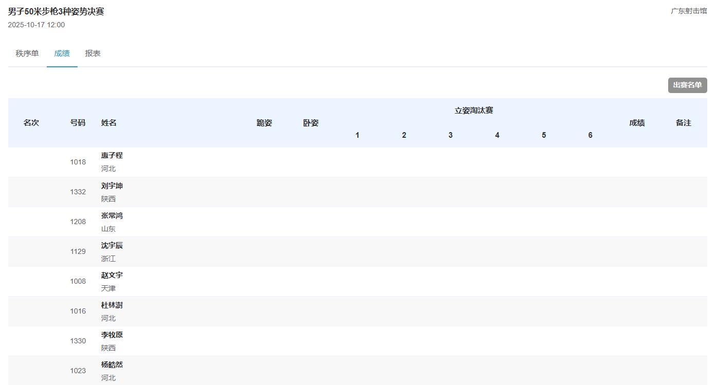 尽管盛李豪在射击领域有着卓越的成就,但此次资格赛中他的表现并未达到预期。晋级决赛的选手名单已经揭晓,包括惠子程、刘宇坤、张常鸿、沈宇辰、赵文宇、杜林澍、李牧原和杨皓然。这几位选手将在今天下午的全运会射击男子50米步枪三姿决赛中,展开激烈的金牌争夺战。