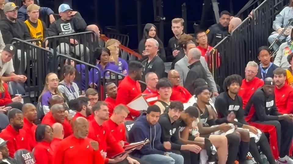 随着比赛深入,杨瀚森在身体对抗中的劣势逐渐暴露。第三节尝试低位单打努尔基奇未果,第四节开场51秒内连续领到进攻和防守犯规,个人犯规数迅速累积至6次,被迫提前离场。替补席上,他不停用毛巾擦脸,脸色通红。开拓者助理教练杰特(前CBA名宿)立即上前安慰,这位年轻中锋的情绪才逐渐平复。