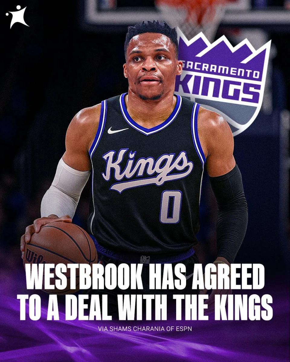 “准37岁”的拉塞尔·威斯布鲁克(1988年11月12日生)在历经漫长等待后,终于敲定了NBA生涯的下一站。据ESPN权威记者Shams Charania报道,这位九届全明星球员、2017年MVP得主已同意加盟萨克拉门托国王队,将以一年360万美元的老将底薪合同开启个人第18个NBA赛季。这份合同预计将于近日正式签约,标志着威少在自由市场徘徊125天后终获归宿。