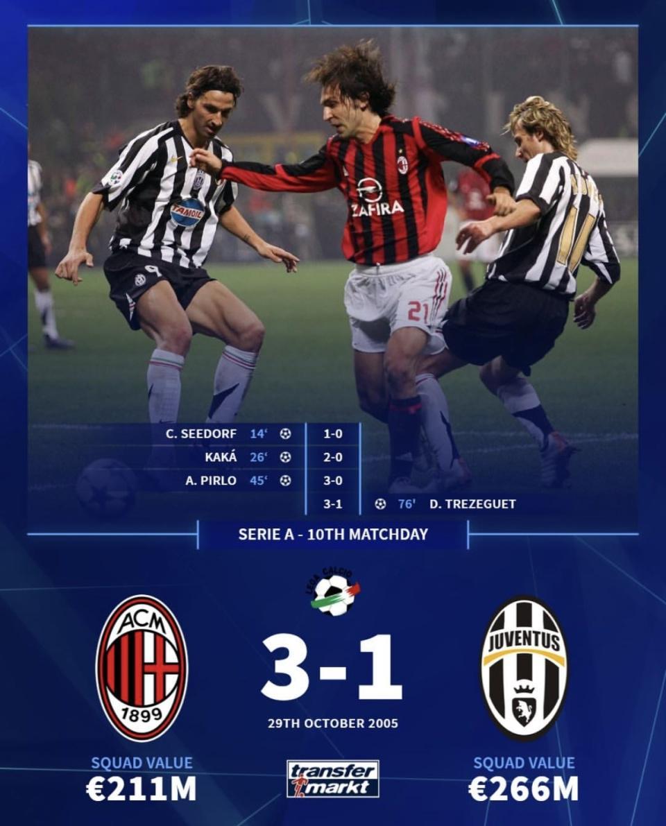 近日,德国转会市场网站的一组回顾数据,将球迷们的记忆拉回到2005年10月29日的意甲赛场。当日,意甲第10轮迎来一场焦点大战——AC米兰对阵尤文图斯。这场比赛不仅是两支豪门的强强对话,更是意甲黄金年代竞技水准与风格对抗的缩影。