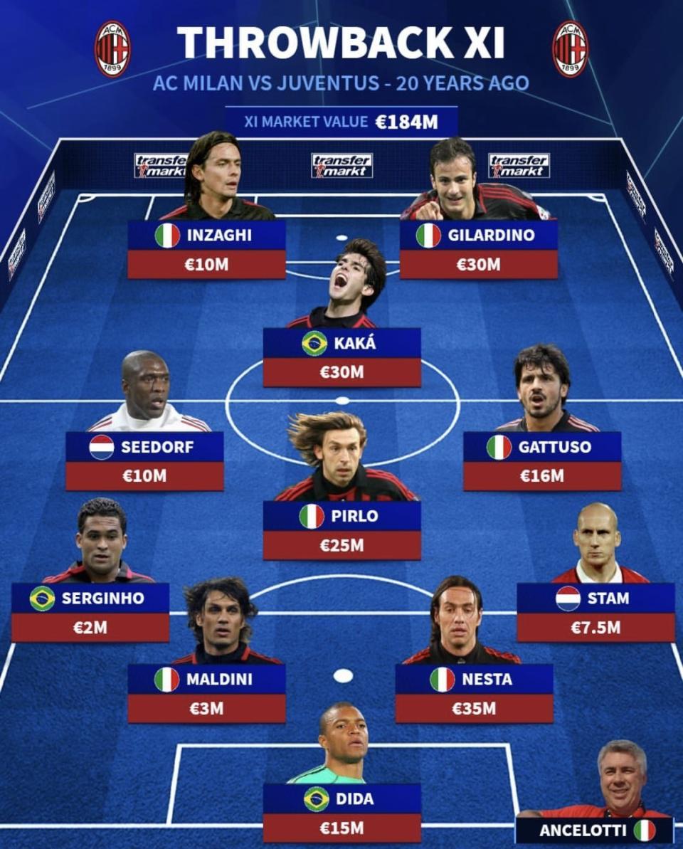 中轴链条vs全面均衡:米兰将最高价值押在中轴线上,内斯塔(3500万)、皮尔洛(2500万)、卡卡(3000万)组成了一条龙的进攻体系,从后场出球到中场节拍再到前场终结,一气呵成。而尤文的价值分布则更为平均,后防与双后腰豪华无比,但缺少能在被动局面下持续加速的组织核心。