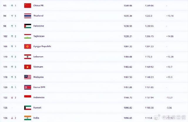 与9月份的情况类似,由于国足主帅人选迟迟未能确定,球队在10月并未进行集结,也未参加任何热身赛。因此,中国男足的积分仍然维持在1249分,未发生变化。