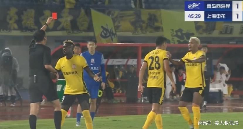 演都不演了,青岛西海岸两人被红牌罚下,上海申花如愿拿到三分。
