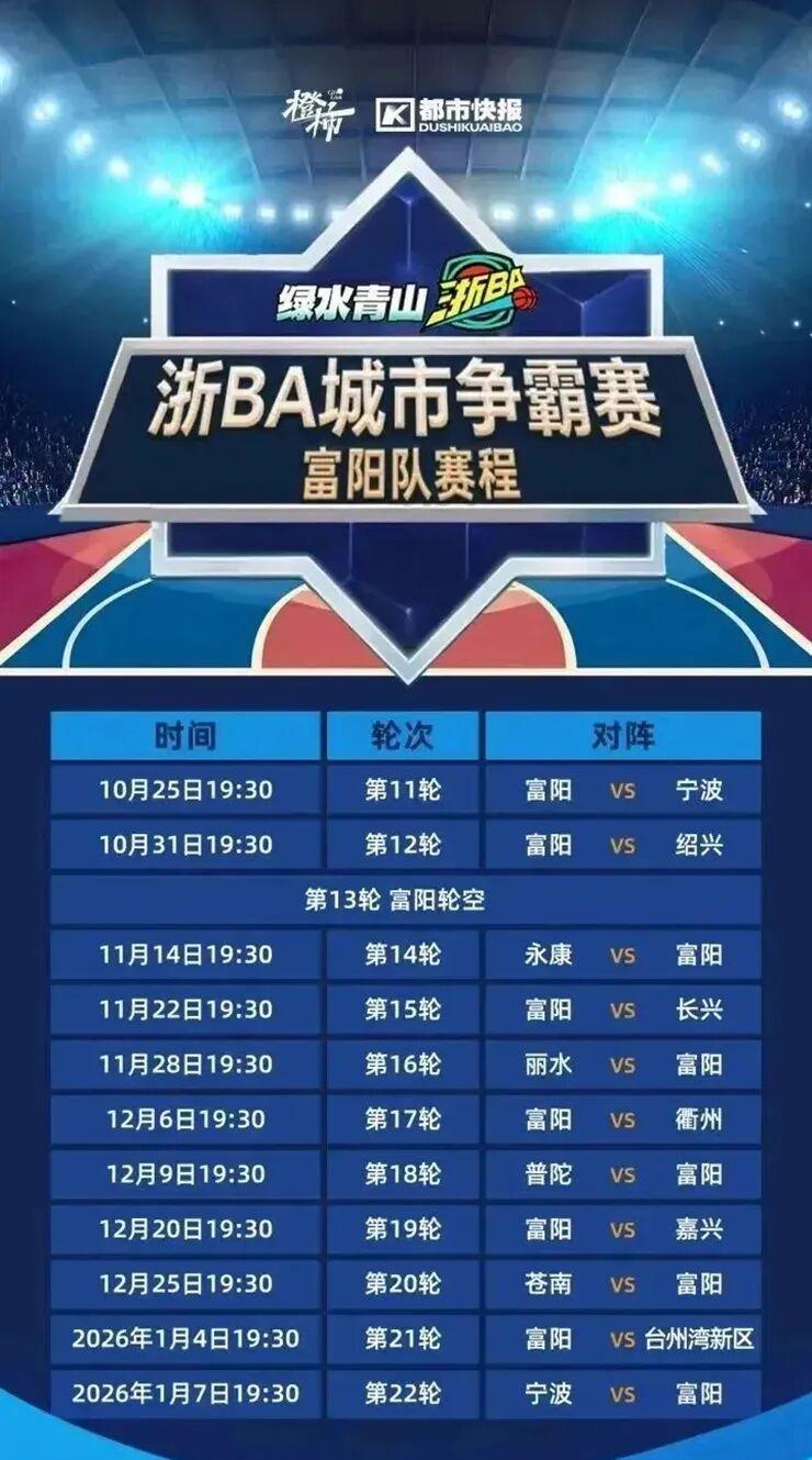 接下来,富阳队将于10月25日主场迎战宁波队,球迷们可以一图掌握富阳队后续赛程(开球时间统一为当天19:30)。