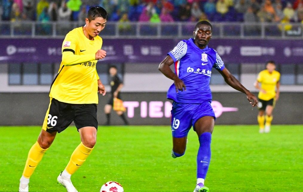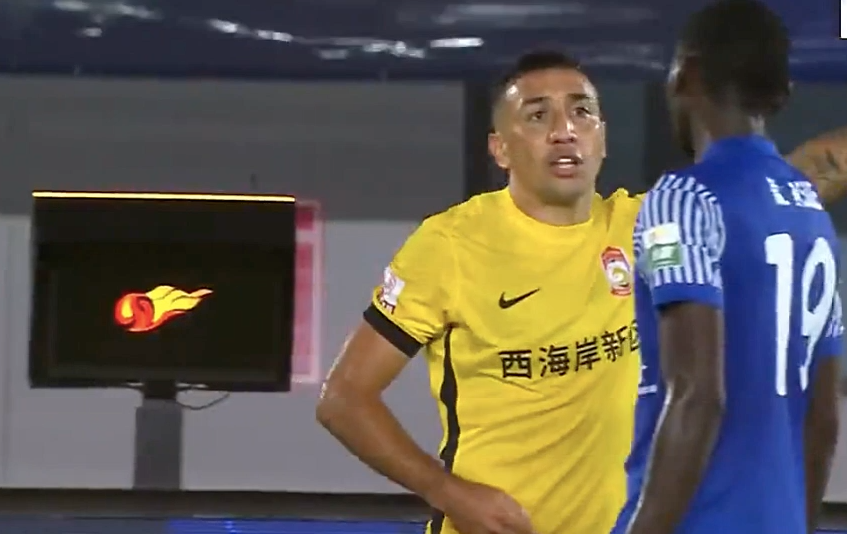上半场补时阶段,前国脚张呈栋因对边裁判罚不满而口吐脏字,连续吃到两张黄牌被罚下场,青岛西海岸的处境更加艰难。