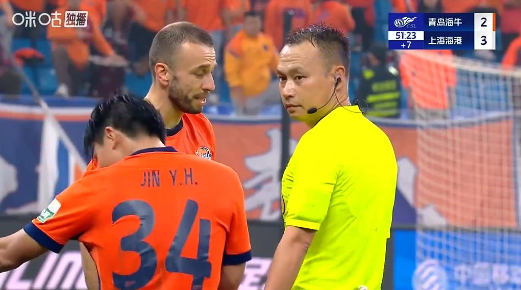 中超第27轮首场比赛便掀起巨大争议!一场疑似点球的判罚被主裁判推翻,上海海港因此逃过一劫并获利,而青岛海牛则错失再度领先的机会。这一判罚不仅让现场观众哗然,更在直播中引发了解说员——前国脚刘越的强烈质疑。
