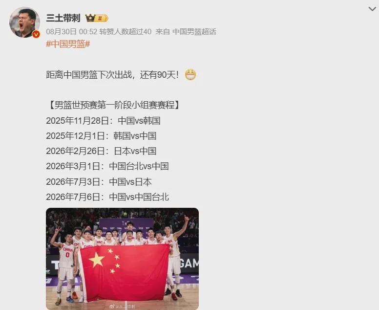 全运会结束后,中国男篮将立即投入新一轮集训。11月28日和12月1日,球队将分别在主场和客场对阵韩国队,开启冲击2027年世界杯参赛资格的征程。这两场世预赛的重要性不言而喻。
