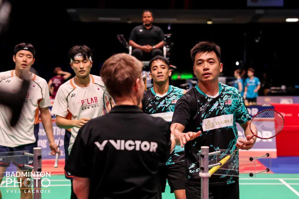 本站比赛,男双前四号种子全部无缘八强,且有三对组合止步首轮。二号种子谢定峰/苏伟译首轮以0比2不敌印尼新组合阿迪安托/希达亚特,三号种子吴世飞/伊祖丁首轮以1比2不敌上周在北极赛夺冠的英格兰组合莱恩/文迪,四号种子阿斯特鲁普/拉斯姆森首轮以1比2不敌中国台北的王齐麟/邱相榤。头号种子金元昊/徐承宰虽然闯过首轮,但在次轮以0比2不敌马来西亚组合陈蔚强/阿兹林。