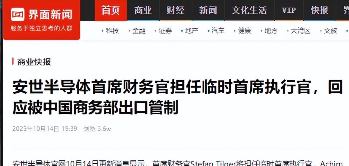 界面新闻——安世半导体首席财务官担任临时首席执行官,回应被中国商务部出口管制
