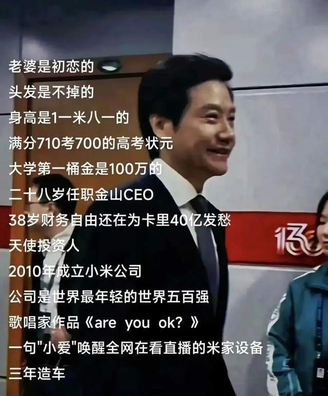 互联网曾流传雷军的“爽文人生”:初恋即伴侣、事业登顶、发量浓密、身高181cm、28岁任金山总经理后创业,打造出手机市场神话。尽管雷军在直播间辟谣,但“雷布斯”的传奇形象仍深入人心。2024年4月,360集团周鸿祎甚至公开称赞其营销能力“神乎其神”。