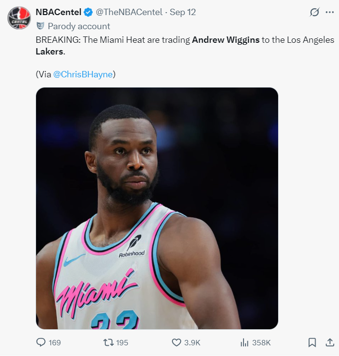自东契奇与湖人达成提前续约后,关于湖人有意引进威金斯以辅佐东契奇的流言便在全美范围内疯传。随后,ESPN与CBS等权威媒体也纷纷发声,证实湖人确实在追逐威金斯。