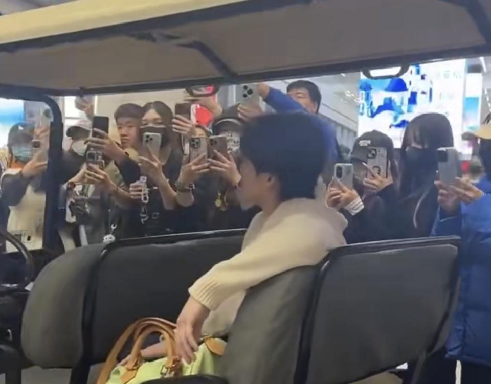 当王楚钦坐着机场摆渡车缓缓驶出时,一大群球迷和“代拍”迅速将他团团围住。他们纷纷举起手机,怼着王楚钦的脸拍照,导致摆渡车几乎无法移动,只能被迫停下。