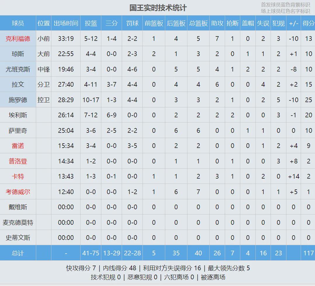 艾萨克-琼斯2罚1中,克内克特最后一投不中,国王罚球绝杀湖人。最终国王117-116险胜湖人,东契奇31分5板9助、八村塁18分、斯玛特14分3板2助4断、文森特14分。里夫斯15投3中,今夏拒绝湖人4年8900万续约,他想要5年1.5亿!
