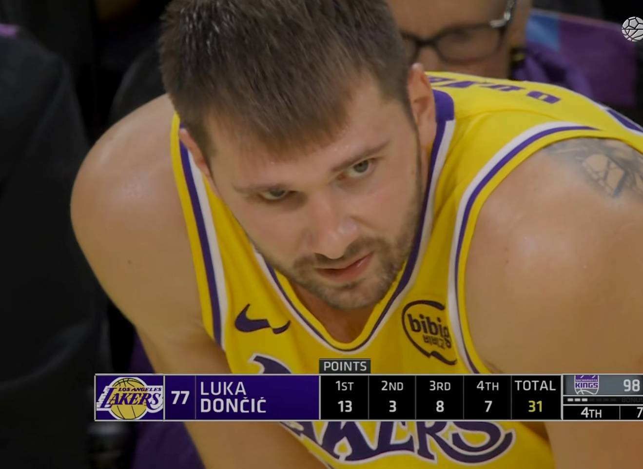 东契奇这场比赛的厉害之处,不仅仅在于他的31分,更在于他全场无差别的强解单打能力。他进的6个三分里,有5个都是自己运球1对1单挑直接干拔进的,对面根本防不住。国王队全队换着人防东契奇,从埃利斯到拉文,再到施罗德和琼斯,没有一个人能防住他。中锋防他移动速度太慢,后卫防他体重顶不住,锋线防他技巧差太远。这样的表现,让东契奇在赛后也是哈哈大笑,显然他对于这场比赛的表现非常满意。