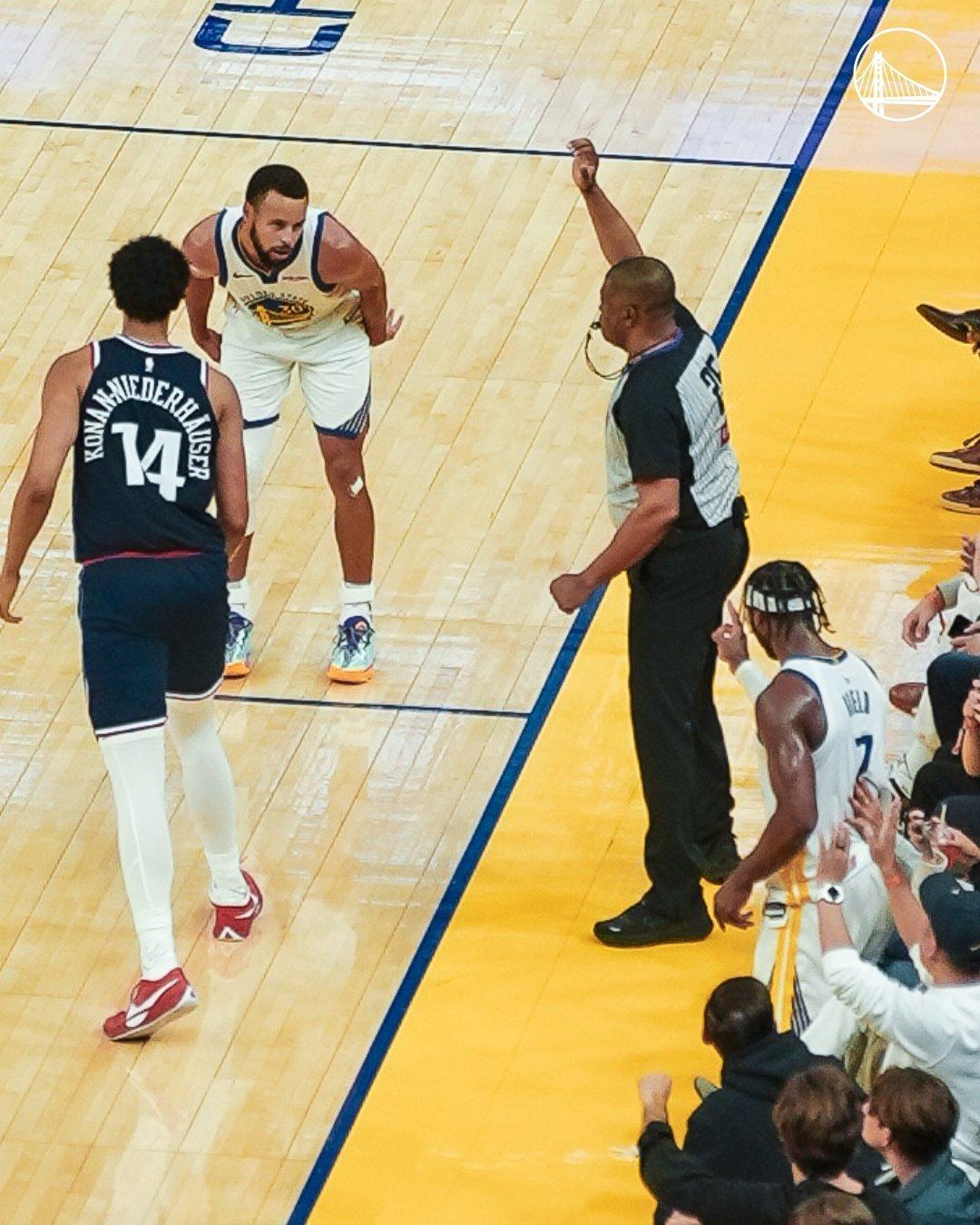 首节比赛,库里外线命中先声夺人,邓恩随即打成2+0,比尔中距离得分稳住阵脚,霍福德则以2+1还以颜色。小琼斯空接暴扣点燃全场,库里连投带罚再得4分。比尔中距离再次得手,小琼斯上篮打进,科尔请求暂停。然而,勇士连续失误,比尔补篮得分,邓恩低位连得4分,快船轰出一波10比0的攻势。希尔德命中远投为勇士打破得分荒,泰伦卢随即请求暂停。