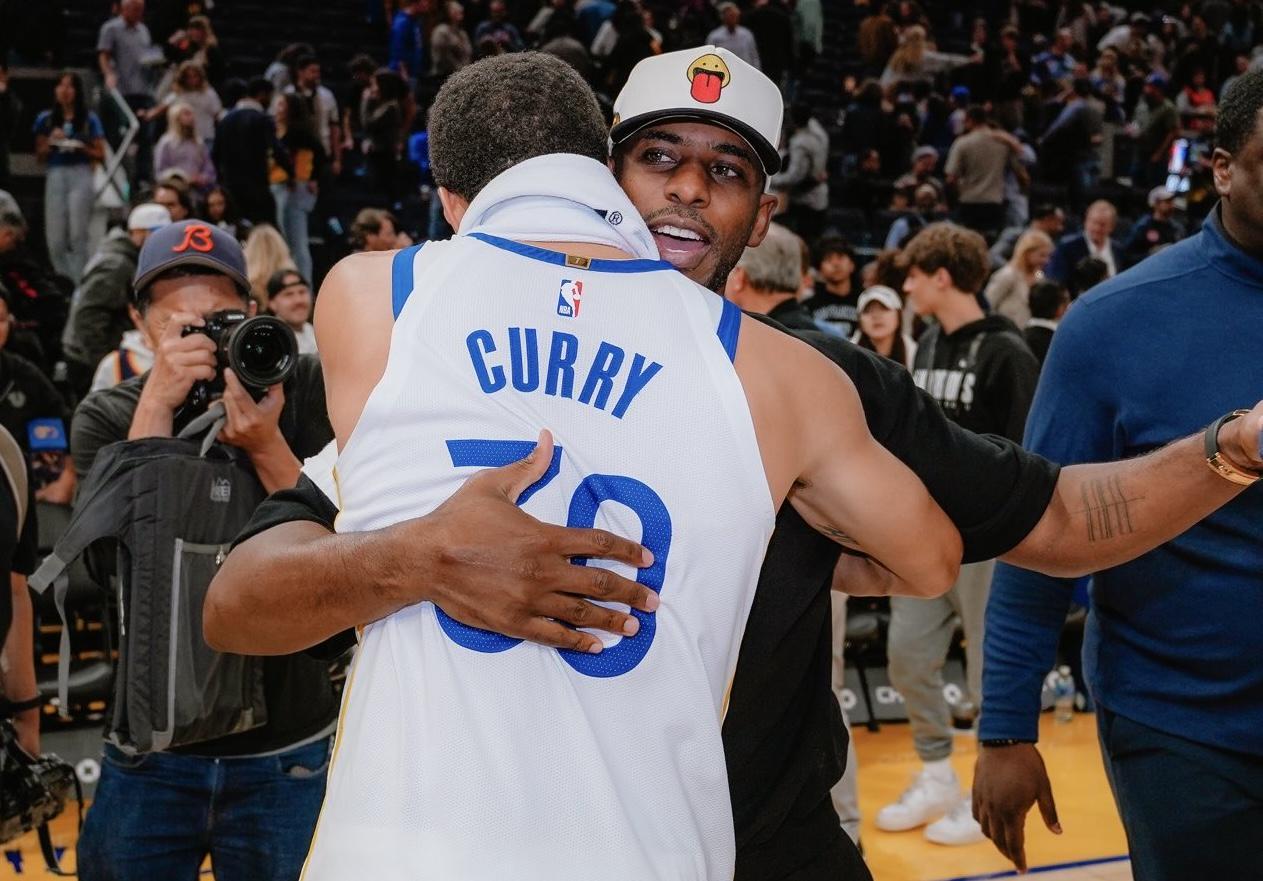 比赛结束后,场边出现了一幕温馨的画面:勇士队当家球星斯蒂芬·库里与前队友、现效力于快船队的克里斯·保罗,在赛场中央紧紧拥抱,彼此致意。这一瞬间,不仅展现了两位超级巨星之间的深厚友谊,更体现了他们对篮球运动的共同热爱与尊重。