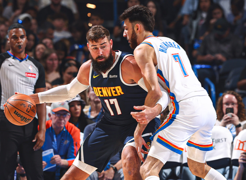 北京时间10月18日,NBA季前赛迎来收官日,一场焦点大战在卫冕冠军雷霆与新赛季夺冠热门掘金之间展开。上赛季季后赛西部半决赛,掘金曾将雷霆拖入抢七大战,但最终因阵容深度不足,在抢七战中以32分惨败。休赛期,掘金通过引进卡梅伦·约翰逊、小哈达威、瓦兰等强援,阵容实力得到显著提升,前四场季前赛取得3胜1负的战绩,新援逐渐融入球队体系。而雷霆则选择大封有功之臣,亚历山大、杰威、霍姆格伦均提前获得超级顶薪续约合同。