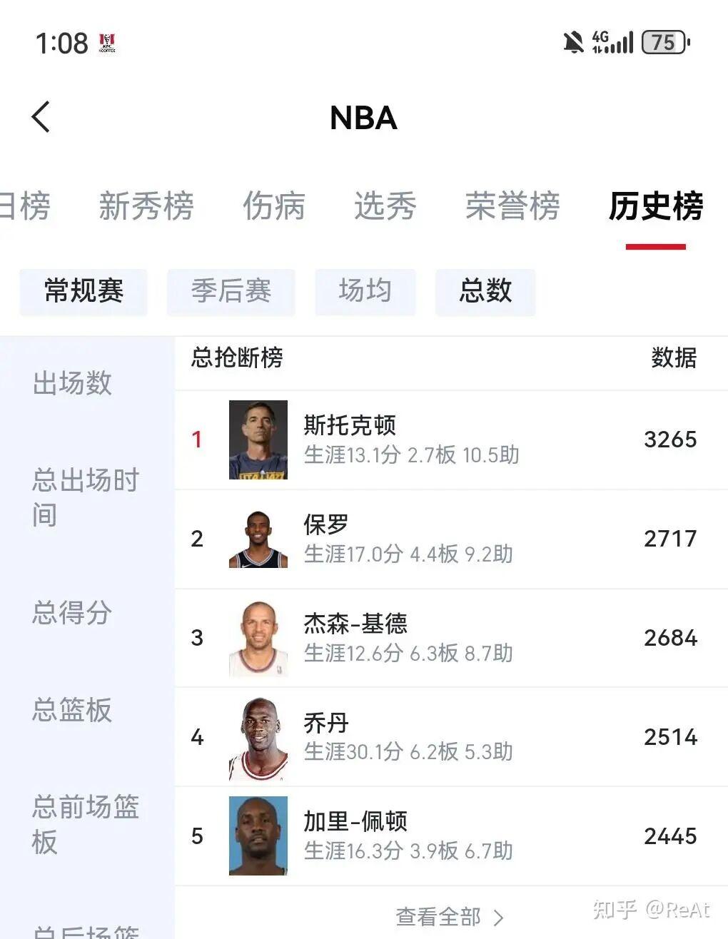 再来看看抢断纪录,斯托克顿的抢断数为3265次,与第二名相差548次。场均抢断2个已经很恐怖了,保罗需要场均2断打上548÷2=274场,也就是3个赛季左右。可以这么说吧,抢断纪录是大概率不可能破掉了。