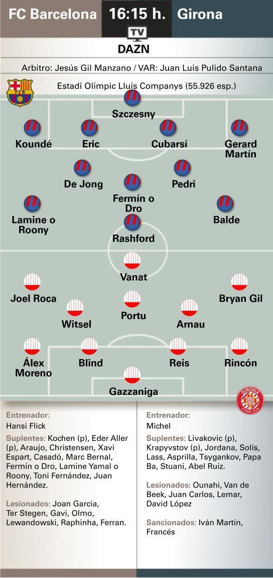 前锋线上,罗卡、瓦纳特以及布莱恩-希尔将组成赫罗纳的攻击群,试图在巴萨的防线上找到突破口。