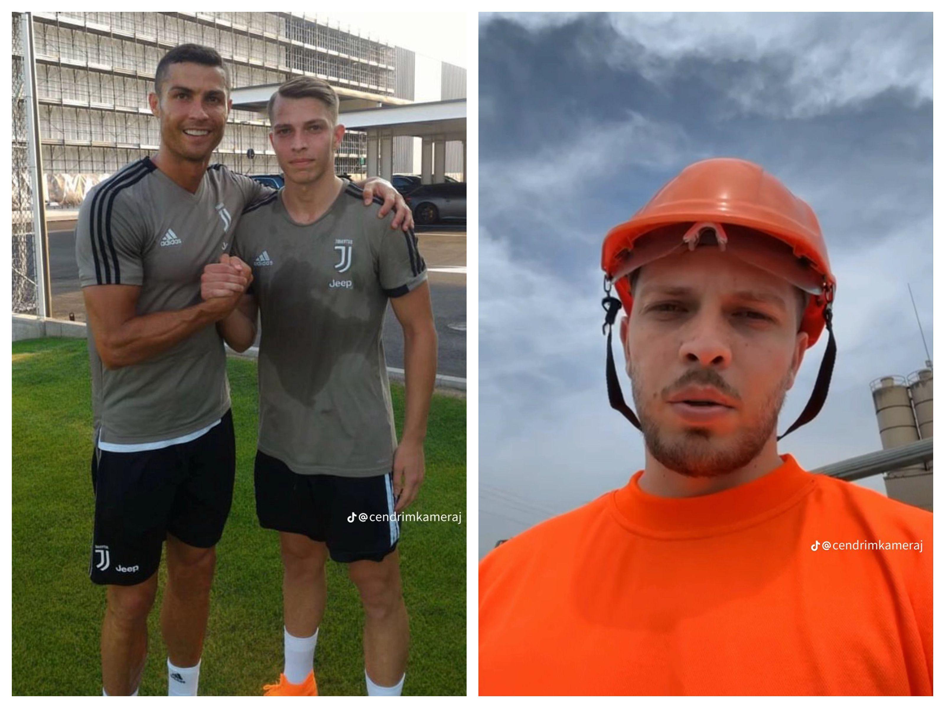 在卡梅拉伊的社交媒体动态中,他并列放出了两张极具对比性的照片。第一张照片中,他身着尤文图斯青年队的球衣,与一线队球员一同训练,其中不乏世界级球星C罗的身影。那时的他,青涩而充满朝气,被视为未来足球界的一颗璀璨新星。然而,第二张照片却展现了他截然不同的现状——身穿工作服,在建筑工地上挥汗如雨,从事着繁重的体力劳动。