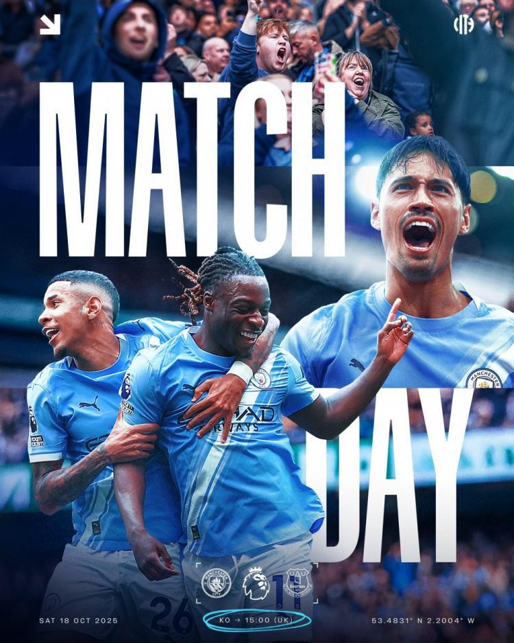 雷速体育10月18日讯 北京时间今晚十点,英超第8轮将迎来一场焦点对决,曼城坐镇主场迎战埃弗顿。赛前,曼城俱乐部官方通过社交媒体平台发布了预热海报,为这场备受瞩目的比赛造势。