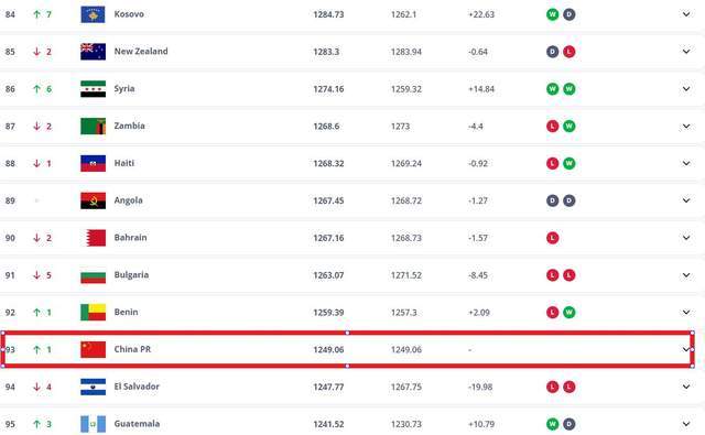 国足排名的上升,实际上得益于萨尔瓦多在10月的两场热身赛中的不佳表现。萨尔瓦多分别输给了巴拿马和危地马拉,导致其排名暴跌4位,从原本的第90位降至第94位。这一变化使得中国男足在未进行任何比赛的情况下,排名从第94位升至第93位,成为了全球排名前95球队中唯一没有比赛可踢的队伍,这一情况在国际足坛实属罕见。