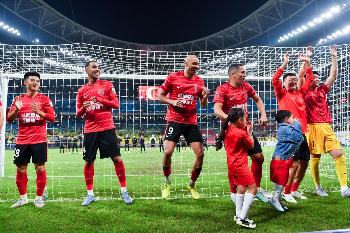 随后开打的另一场比赛,成都蓉城主场面对同样处于保级集团的梅州客家,踢得相对轻松。全场狂轰23脚射门,由杨明洋、莱切特、罗慕洛3次攻破对手球门。而梅州客家方面,全场只创造了2脚射门,由罗德里格-恩里克在比赛第25分钟攻入一球。最终,成都蓉城主场3-1拿下梅州客家,稳居积分榜第2位。