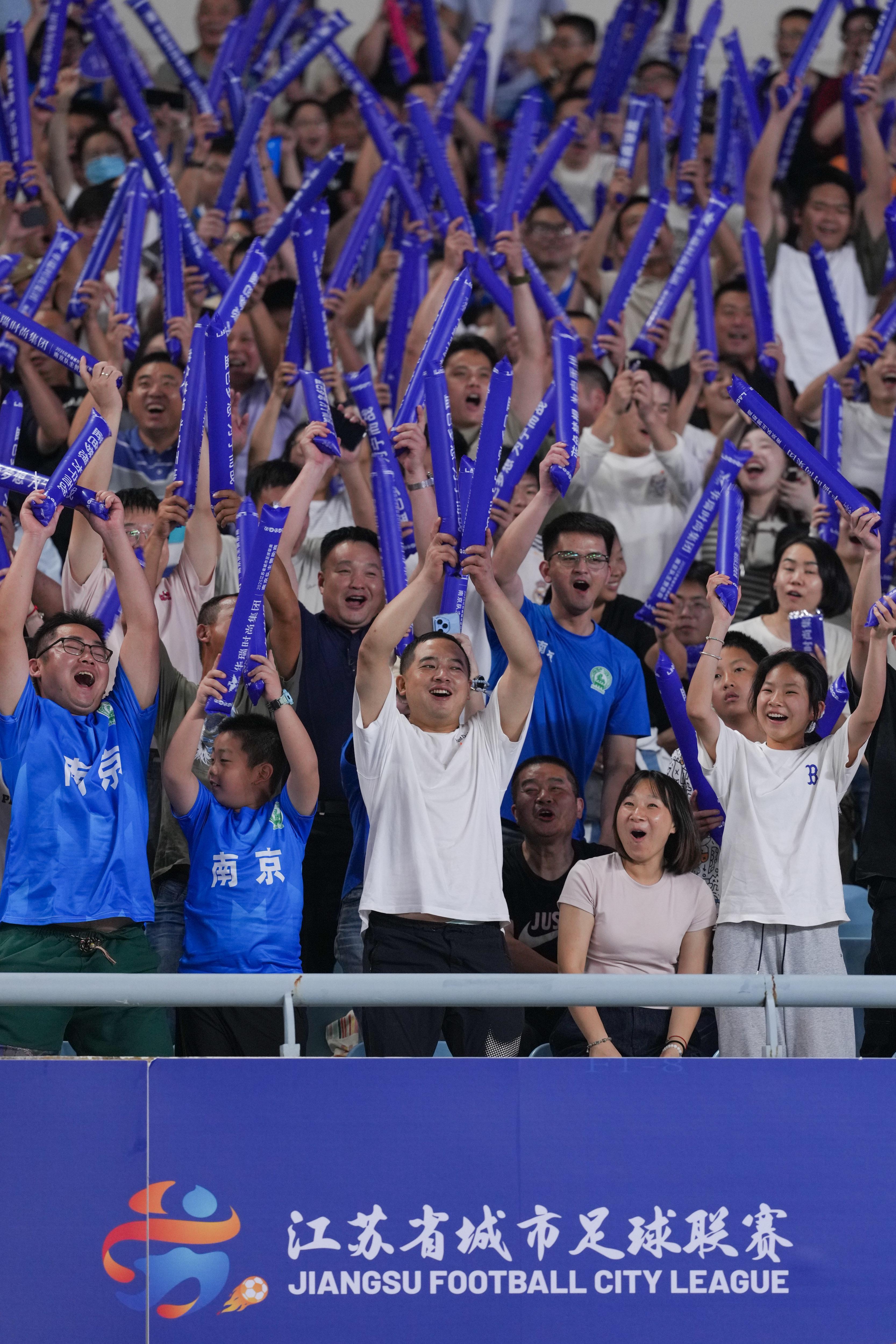 10月4日,2025江苏省城市足球联赛(“苏超”)四分之一决赛,共有61355名球迷到场观赛。新华社记者 李博 摄