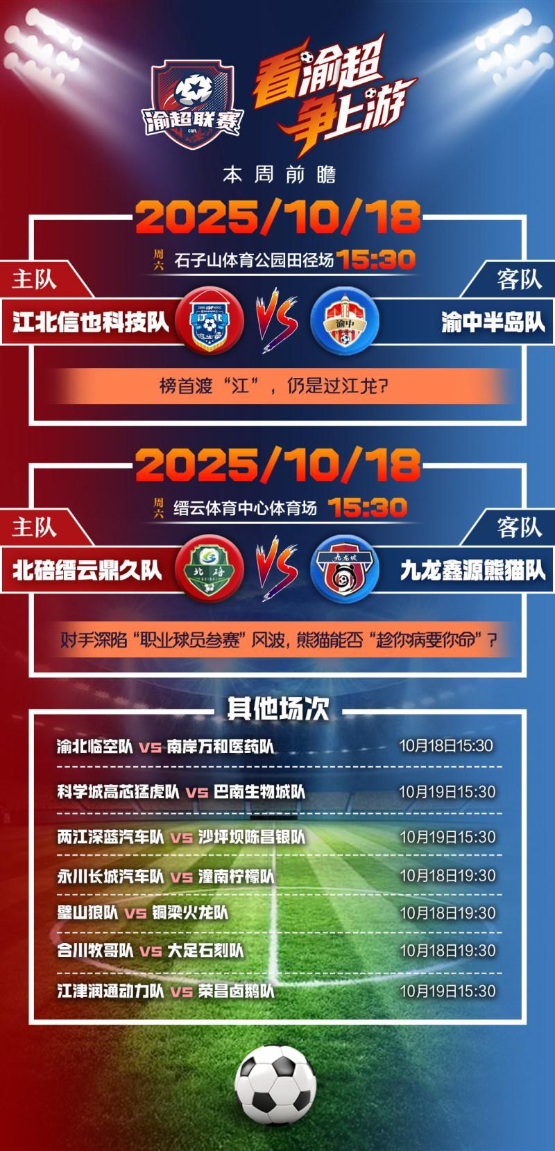 让我们共同期待渝超联赛本周的精彩对决,见证足球的魅力和激情!