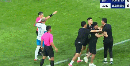 接着,36岁的老将张呈栋也因不满判罚,连续怒喷边裁和当值主裁,甚至连外援队友都拉不住,结果也是吃到第2张黄牌,在半场结束前被罚下。