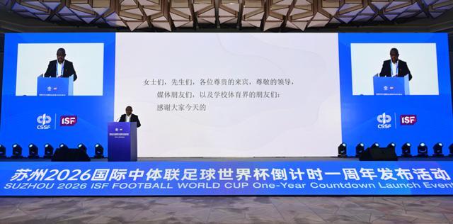 国际中体联足球技术委员会主席贾斯特斯·穆吉沙代表国际中体联考察团宣布,根据考察评估,苏州完全有能力举办一届最非同寻常、最令人难忘的2026年国际中体联足球世界杯。他表示,对苏州进行考察访问中,考察团对所见的一切都感到非常满意。一流的设施、周密的组织以及热情好客的氛围,让考察团对本次赛事的成功举办充满信心。贾斯特斯·穆吉沙还表示,届时,全球的青少年运动员们不仅将在此竞技,更将在此学习、分享,收获一段终生难忘的宝贵经历。