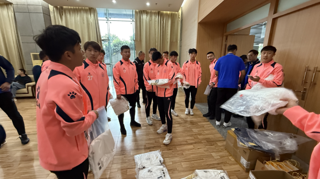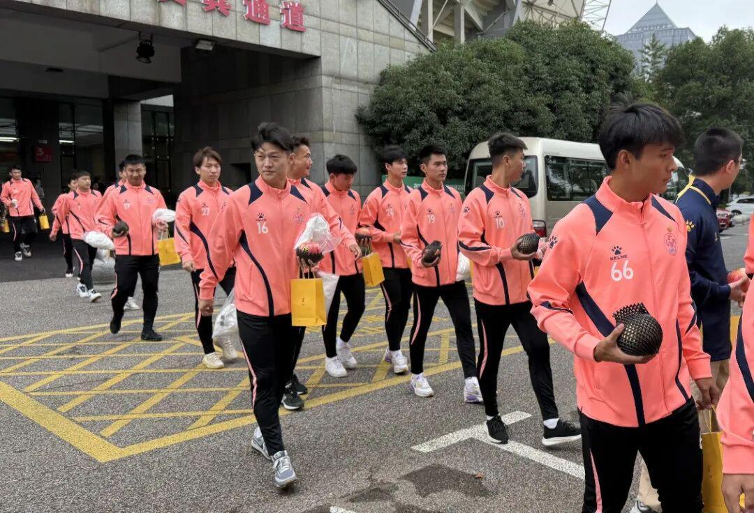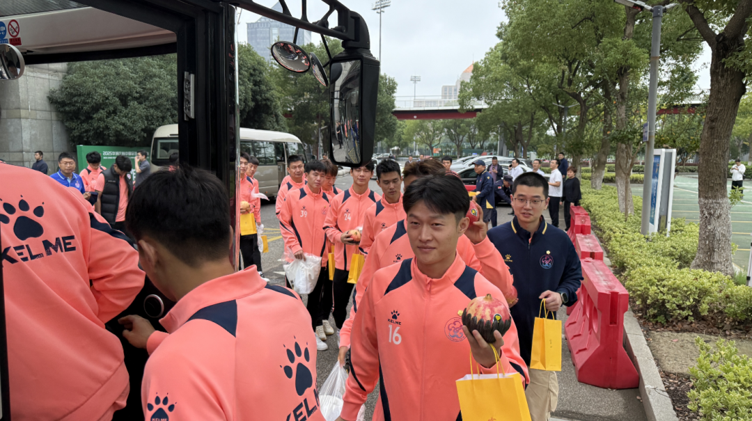 出征仪式上,工作人员为每位队员递上象征团结的红石榴。主教练唐京接过这份特殊礼物时,向后勤团队深深鞠躬致谢:"我们定当不负期待,在赛场上展现无锡足球的风采。"队员们也纷纷表示将以最佳状态迎战强敌。